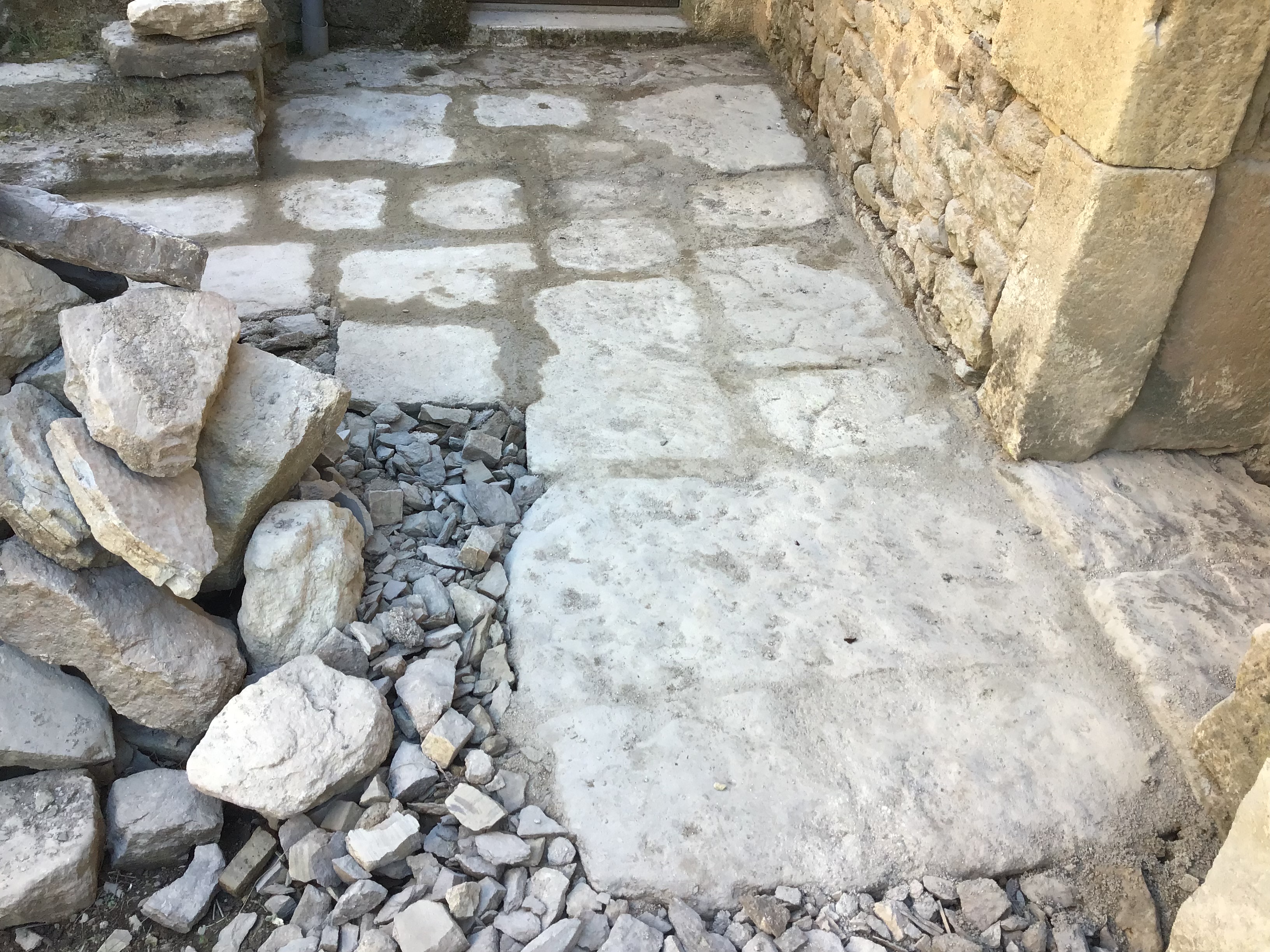 Es hat einige Erfahrungen gebraucht, bis ich begriffen habe, wie sich die Beschaffenheit des alten Untergrundes hier in meinem zweiten Haus auswirkt. Der Boden des Hauses war im Wohnbereich mit dicken Sandsteinplatten belegt. Man war versucht, dieses rustikale Element zu erhalten und in den neuen Plan zu integrieren. Die grob bearbeiteten Oberflächen waren mir aber für die Pflege zu unpraktisch und es war rasch klar, dass ich einen neuen Bodenbelag einbringen werde. Da ich an dieser Stelle aber auch mein Brennholz spaltete, ist mir aufgefallen, dass diese schweren, dicken Bodenplatten unter den Erschütterungen der Axtschläge sich bewegten und sich millimeterweise in den Untergrund verschoben.